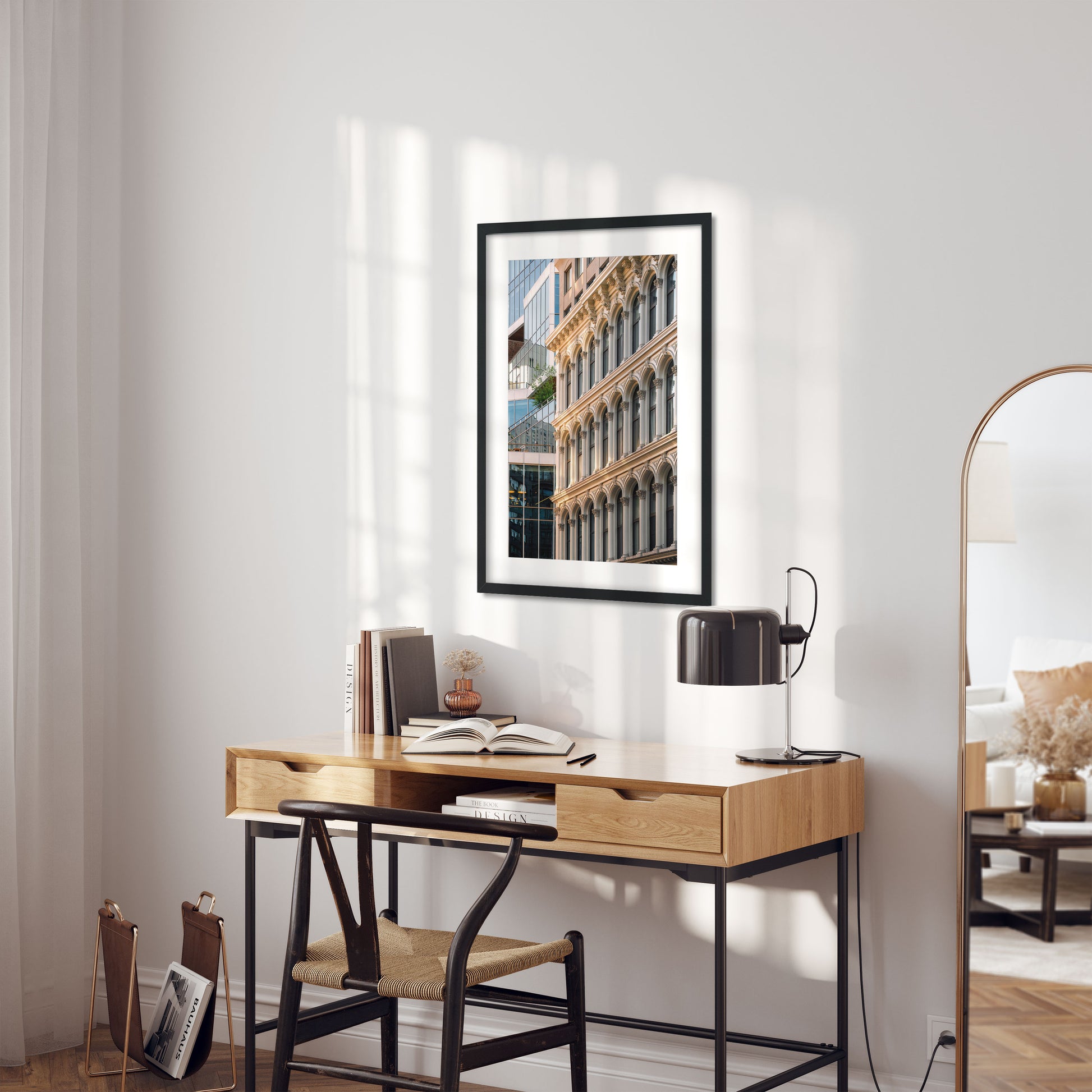 Fine Art made from a Premium polished, best-in-class, 99.9% optically pure acrylic and the latest Flatbed printing craftsmanship. With a floating frame on the back and hanging wire