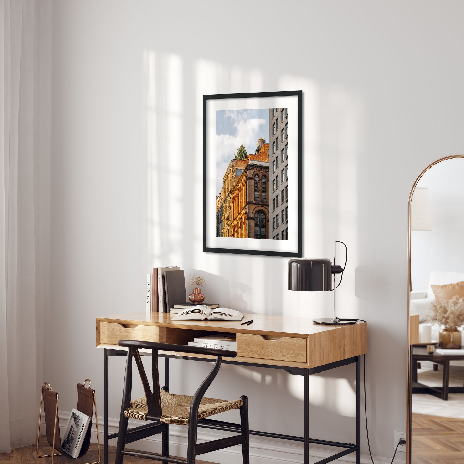 Fine Art made from a Premium polished, best-in-class, 99.9% optically pure acrylic and the latest Flatbed printing craftsmanship. With a floating frame on the back and hanging wire
