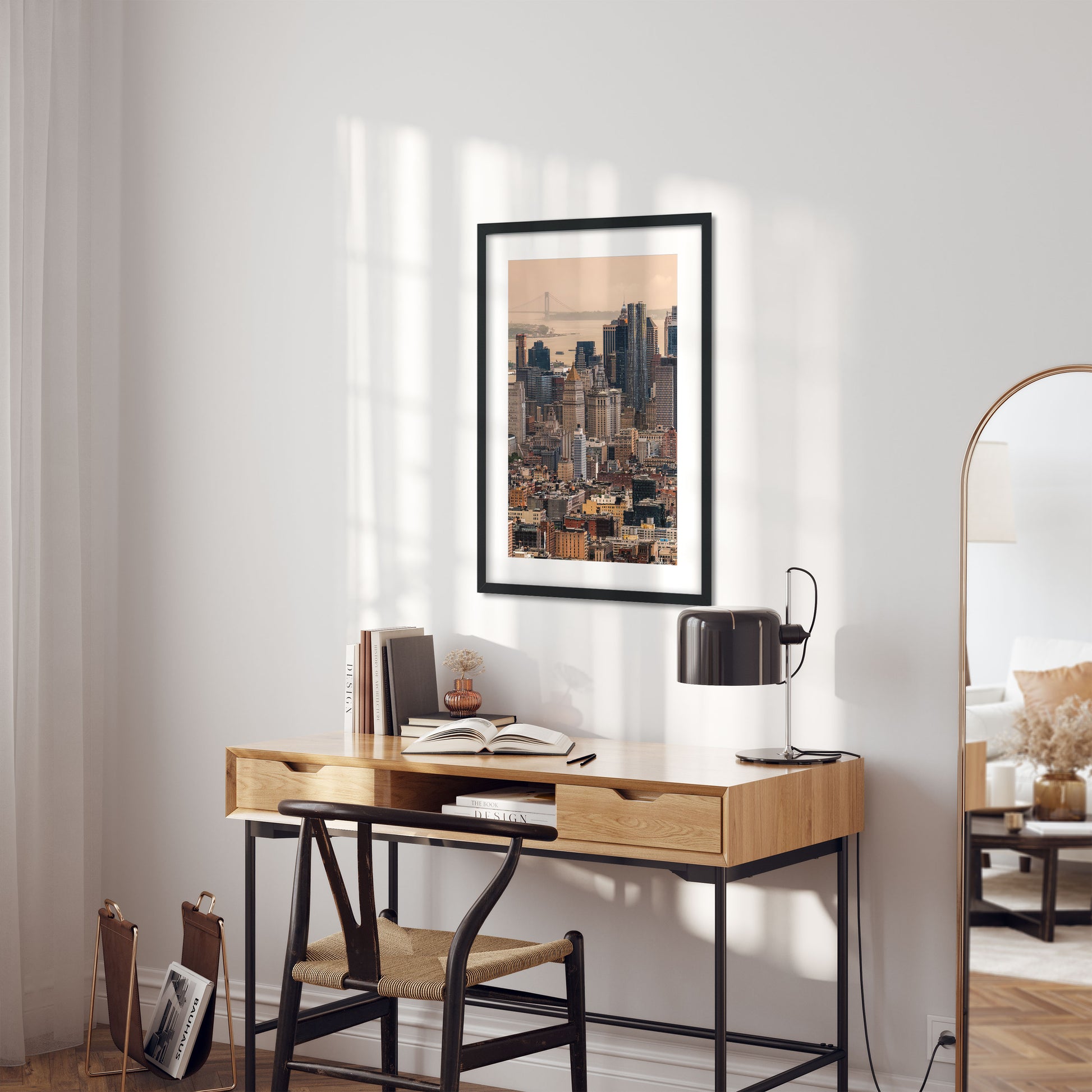 Fine Art made from a Premium polished, best-in-class, 99.9% optically pure acrylic and the latest Flatbed printing craftsmanship. With a floating frame on the back and hanging wire